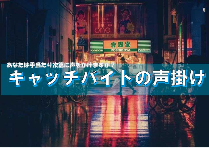 町中を歩いていると「居酒屋いかがですか?」「お探しのごはん屋さんありませんか?」と声をかけられたことはありますよね。居酒屋のキャッチ路上バイトは高収入バイトとして紹介されることも多くなりました。